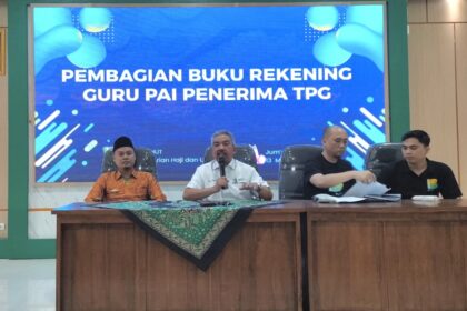 Mesuji, Kemenag (Humas) — Kantor Kementerian Agama Kabupaten Mesuji melalui Seksi Pendidikan Islam membagikan buku rekening kepada guru penerima Tunjangan Profesi Guru (TPG) tahun 2025. Kegiatan pemba...