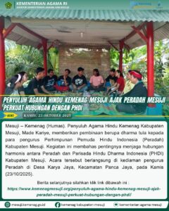 Mesuji – Kemenag (Humas). Penyuluh Agama Hindu Kemenag Kabupaten Mesuji, Made Kariye, memberikan pembinaan berupa dharma tula kepada para pengurus…