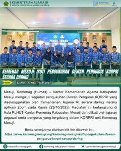 Mesuji, Kemenag (Humas) – Kantor Kementerian Agama Kabupaten Mesuji mengikuti kegiatan pengukuhan Dewan Pengurus KORPRI yang diselenggarakan oleh Kementerian Agama…