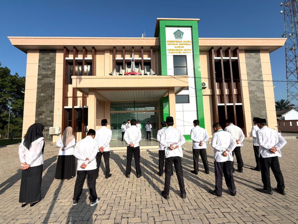 Mesuji (Kemenag Humas) — Kantor Kementerian Agama Kabupaten Mesuji menggelar apel pagi pada Senin (27/04/2026) di halaman kantor setempat. Kegiatan tersebut dipimpin langsung oleh Kepala Kantor Kemenag Mesuji, A. Jalaluddin, dan diikuti oleh Plt. Kasubag TU serta seluruh ASN di lingkungan Kemenag Mesuji.