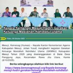 Mesuji, Kemenag (Humas) – Dalam rangka menindaklanjuti Surat Edaran Sekretaris Jenderal Kementerian Agama Nomor SE.33 Tahun 2025 tentang Pelaksanaan Apel Hari Santri 2025, Kantor Kementerian Agama Kabupaten Mesuji menggelar rapat persiapan pelaksanaan peringatan Hari Santri Nasional tahun 2025. Rapat berlangsung di ruang rapat kantor kemenag mesuji, Rabu (8/10/2025).