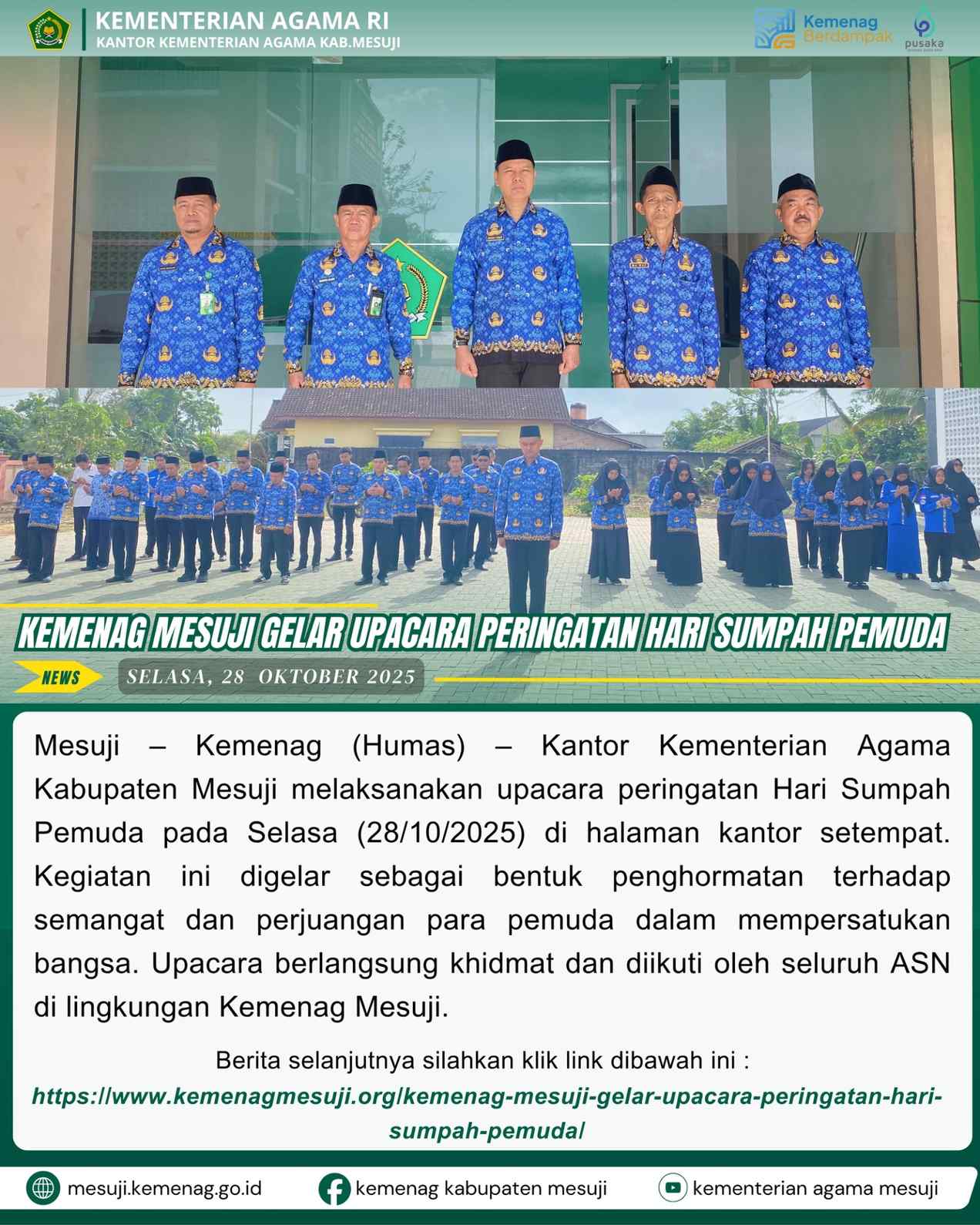 Mesuji, Kemenag (Humas) – Kantor Kementerian Agama Kabupaten Mesuji menggelar kegiatan bimbingan teknis (bimtek) Sistem Informasi Kearsipan Dinamis Terintegrasi (Srikandi)…