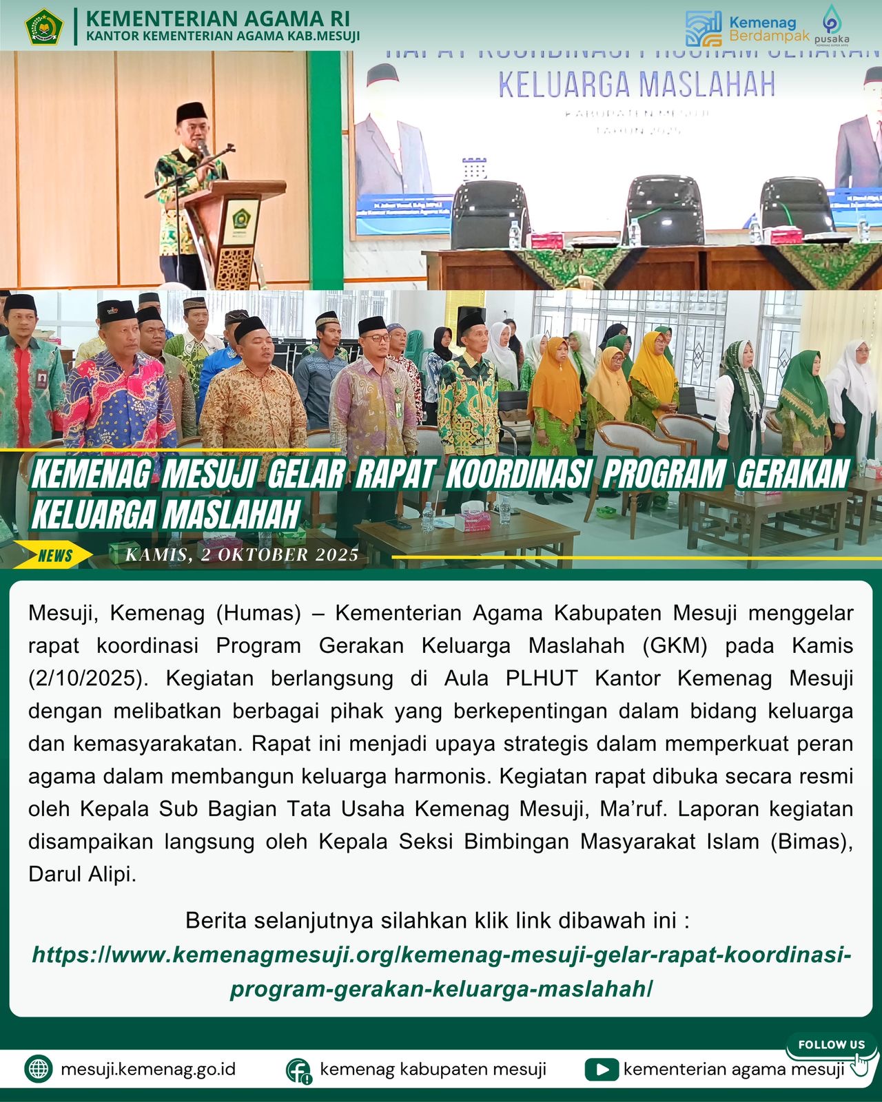 Mesuji – (Humas) Kepala Kantor Kementerian Agama Kabupaten Mesuji Johan Yusuf, melalui Kasi Bimbingan Masyarakat Islam Darul Alipi, menghadiri Rapat…