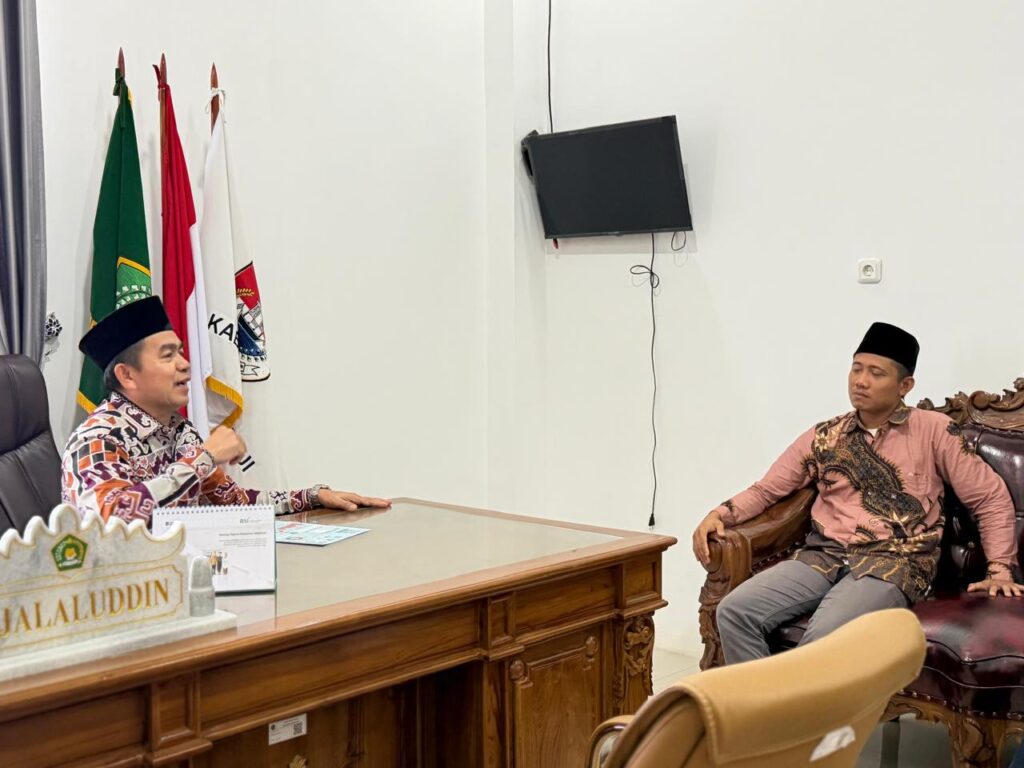 Mesuji, Kemenag (Humas) — Kepala Kantor Kementerian Agama Kabupaten Mesuji, A. Jalaluddin, menerima audiensi dari Ikatan Penyuluh Agama Islam Republik Indonesia (IPARI) Kabupaten Mesuji, Kamis (26/02/2026). Pertemuan tersebut berlangsung di Ruang Kerja Kepala Kantor Kemenag Mesuji dan turut didampingi Kepala Seksi Bimbingan Masyarakat Islam, Darul Alipi.