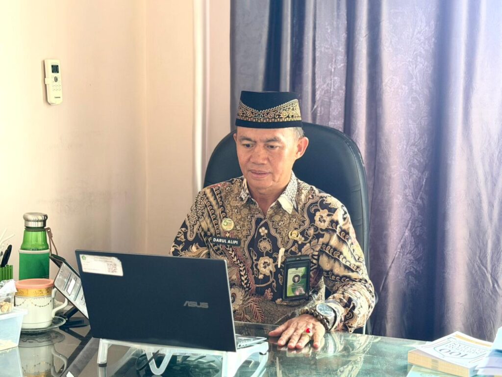 Mesuji, Kemenag (Humas) – Kepala Kantor Kementerian Agama Kabupaten Mesuji, A. Jalaluddin, mengikuti kegiatan Sosialisasi Pengukuran Indeks Harmoni Indonesia (HaI) Tahun 2026 secara daring, Rabu (18/02/2026). Kegiatan ini diselenggarakan sebagai bagian dari persiapan pelaksanaan pengukuran indeks harmoni. Sosialisasi tersebut diikuti oleh seluruh Kepala Kantor wilayah serta kabupaten/kota Kementerian Agama se-Indonesia.