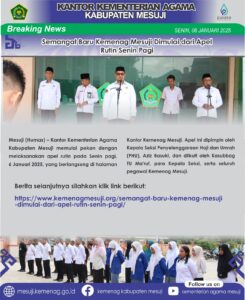 Mesuji (Humas) – Kantor Kementerian Agama Kabupaten Mesuji memulai pekan dengan melaksanakan apel rutin pada Senin pagi, 6 Januari 2025,…