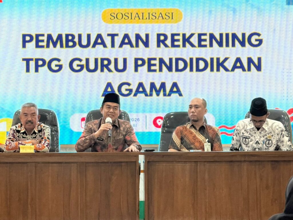 Mesuji, Kemenag (Humas) – Kementerian Agama Kabupaten Mesuji melalui Seksi Pendidikan Islam menggelar kegiatan sosialisasi pembuatan rekening Tunjangan Profesi Guru (TPG) bagi Guru Pendidikan Agama di Kabupaten Mesuji, Rabu (25/02/2026). Kegiatan tersebut dilaksanakan di Aula Kantor Kementerian Haji dan Umrah Kabupaten Mesuji dan diikuti para guru pendidikan agama yang telah memiliki sertifikasi pendidik.
