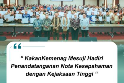 Mesuji, Kemenag (Humas) – Kepala Kantor Kementerian Agama Kabupaten Mesuji, Johan Yusuf, menghadiri kegiatan penandatanganan Nota Kesepahaman yang digelar di Gedung Pusiban, Kantor Gubernur Provinsi L...